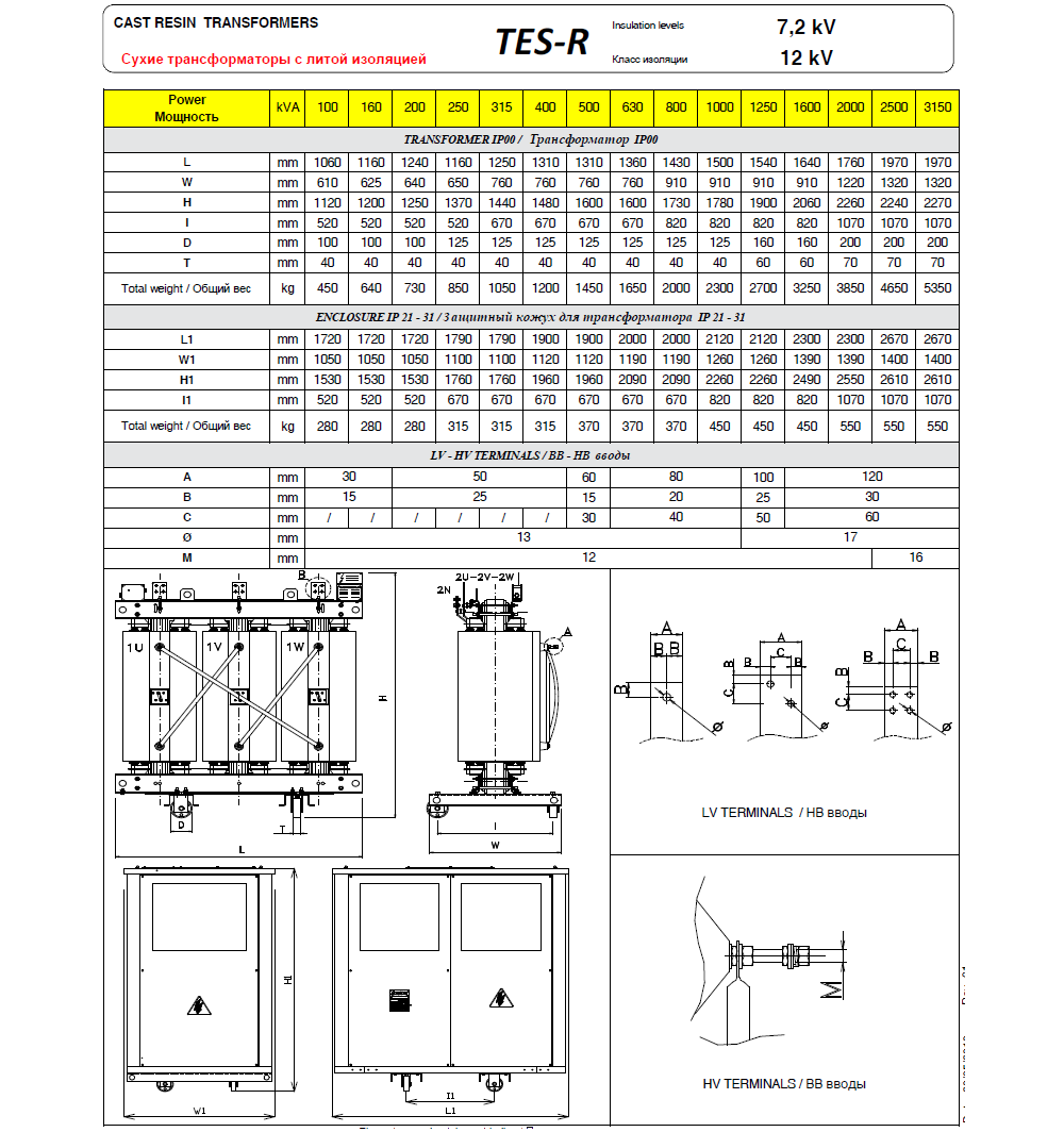 – Trafo Elettro Service производит тр-ры с усиленным классом изоляции до 52kV включительно, а так же серийно производит сухие тр-ры с классом изоляции по BIL 90- 120-150-170-200kV. В мире всего 2 производителя производят сухие трансформаторы с таким классом изоляции. Есть специальная версия тр–ров для РФ номинальным напряжением 10kV и классом изоляции 17,5kV(BIL 90kV).