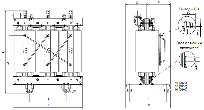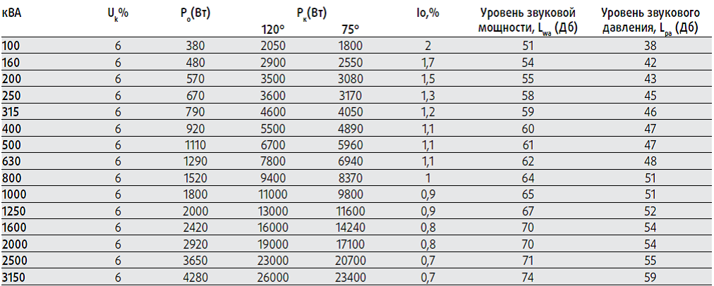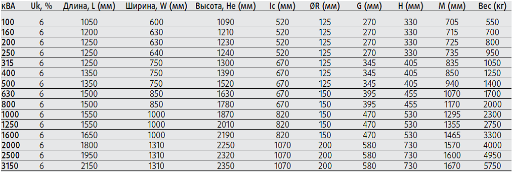 Мощность 100-3150 кВА.